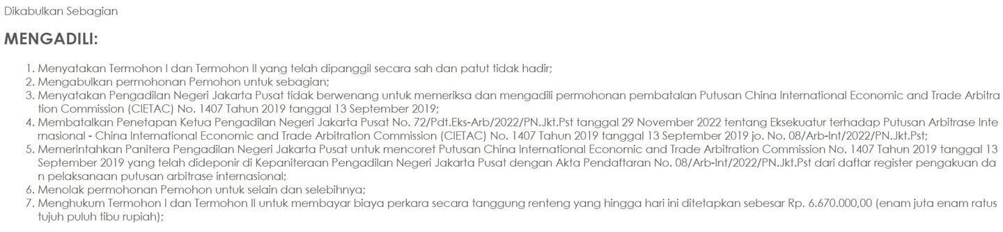 The annulment of an arbitral award is conducted in accordance with Supreme Court Regulation No. 3 of 2023 on the Procedure for the Appointment of Arbitrators by the Court, Challenge Rights, Examination of Enforcement Applications, and Annulment of Arbitral Awards.